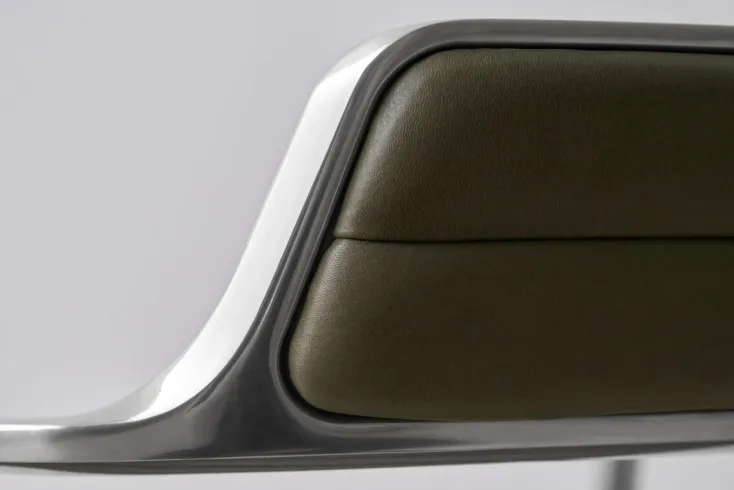 - Material: Poliertes Aluminium, mit grünem Leder bezogen