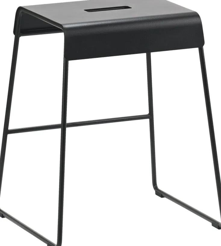 Der A-Stool ist ein Hocker aus lackiertem Stahl ohne viel Brimborium. Die Sitzfläche ist angenehm breit, die leicht ausgestellten Beine sorgen für viel Stabilität. Dank des markanten Schlitzes in der Mitte der Sitzfläche lässt sich der Schemel nach Wunsch leicht versetzen. Lassen Sie ihn den Sommer auf der Terrasse genießen und holen Sie ihn ins Haus, wenn Sie einen zusätzlichen Sitzplatz benötigen.