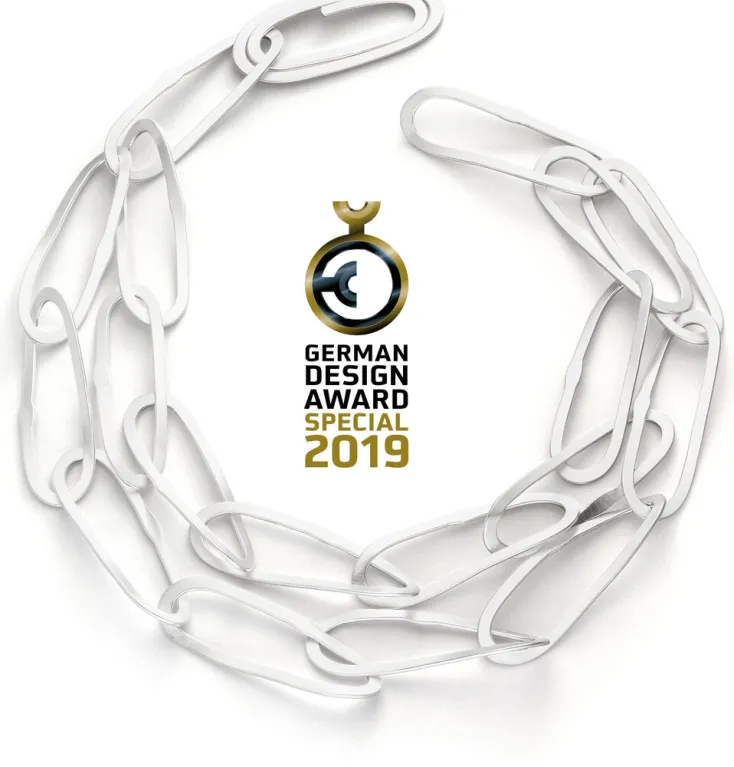 Erleben Sie zeitlose Eleganz mit diesem preisgekrönten Silber-Collier, dem stolzen Gewinner des German Design Award 2019.