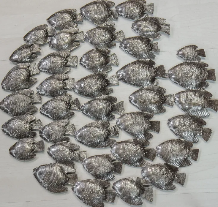 Die Bosmetal-Kunst ist seit den 1950er Jahren haitianische Tradition. Ein besonders schönes – fast anmutendes – Wandobjekt ist dieser Fischschwarm aus Eisen.