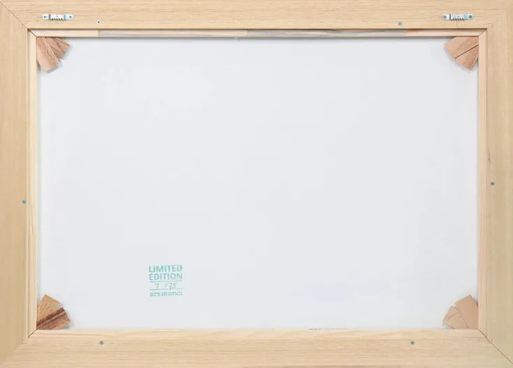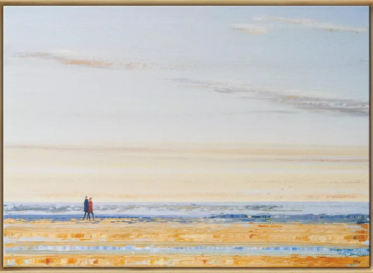 Jedes Exemplar »Leises Meeresrauchen« der Künstlerin Anja Struck aus Lüneburg ist einzigartig. Spaziergänger und Vogelschwarm werden von der Künstlerin nachträglich mit Ölfarbe eingefügt. Dieses serielle Unikat ist limitiert auf 75 Exemplare und wird per Hand nummeriert und signiert.