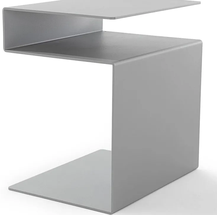 Form follows function: Ganz nach diesem Prinzip ist der Beistelltisch »HUK« konzipiert. Durch Drehen und Wenden sowie die individuelle Positionierung lässt sich der Tisch immer wieder neu entdecken – egal ob als Nachttisch, Hocker, Zeitungsständer, Couchtisch, Schreibtischaufsatz für Ordner oder als Pult. Der Tisch ist aus pulverbeschichtetem, wetterfestem Aluminium. Erhältlich in drei edlen Farben.