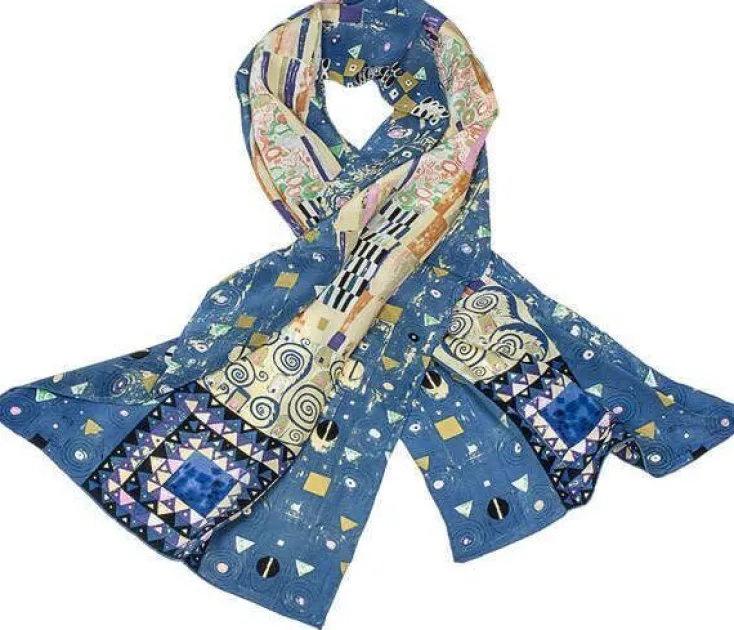 Der farbenfrohe Schal ist Klimts Wandfries »Stoclet Fries« nachempfunden und auf 100% Seide reproduziert und rouliert.