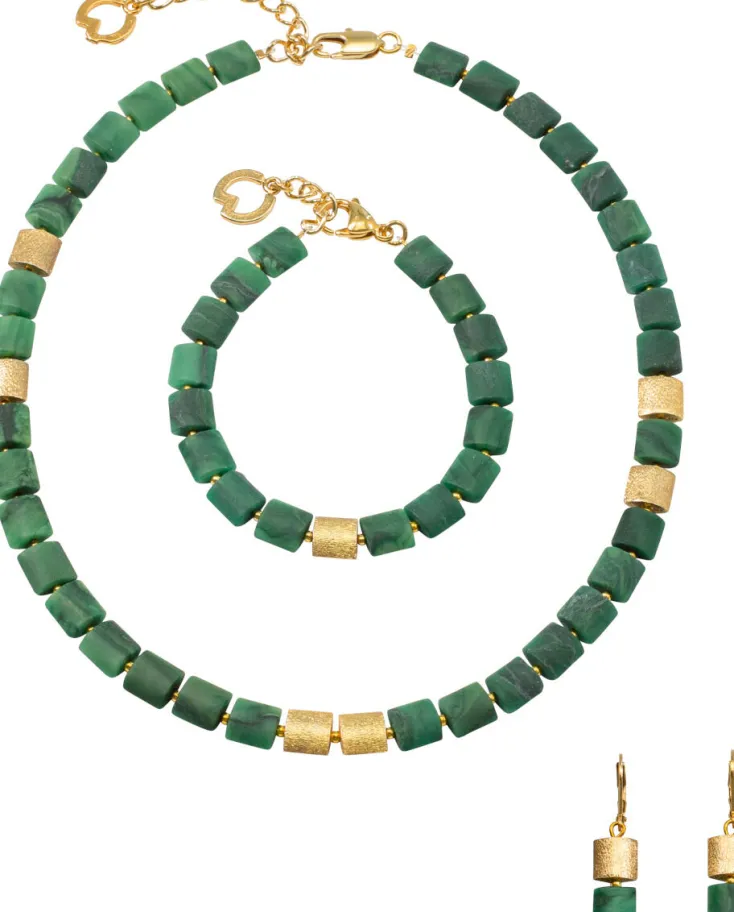 Dieser zeitloser Schmuck verbindet intensive Grüntöne mit goldenen Highlights.