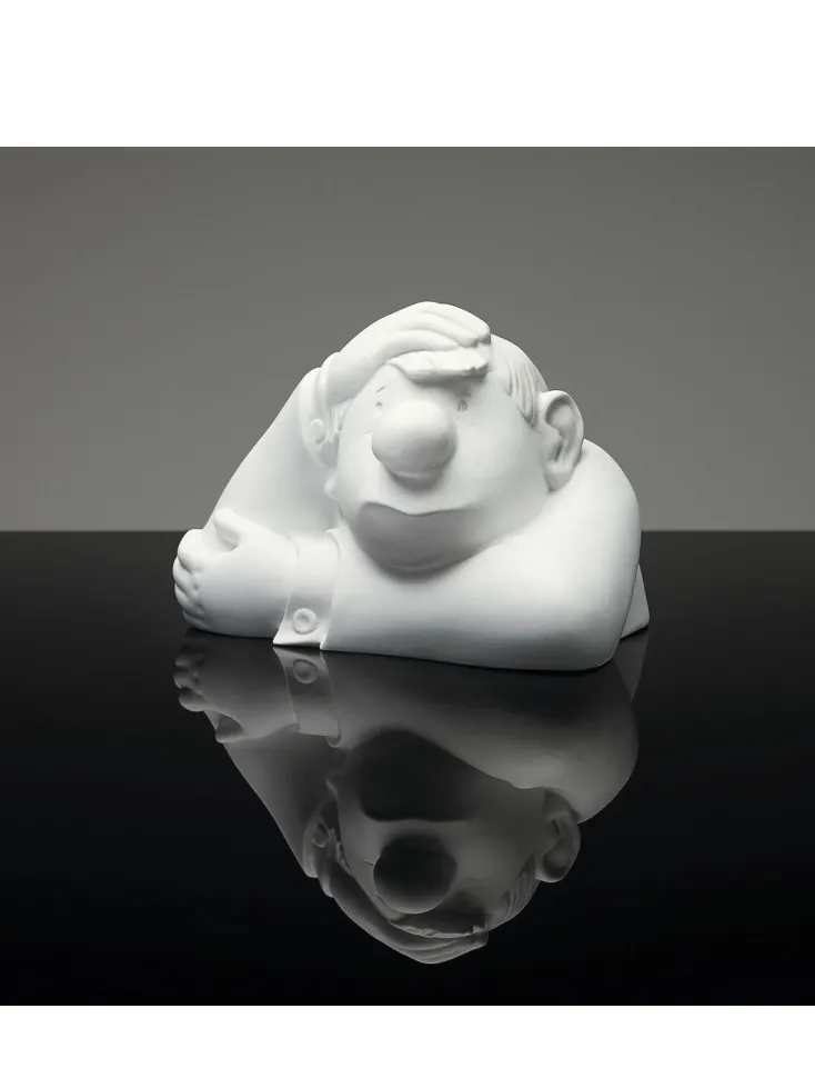 Diese Plastik ist in ihrer angespannten Nachdenklichkeit eine liebevolle Hommage an die gleichnamige Skulptur Auguste Rodins, wird aber von Loriot um die Komponente des stillen Humors bereichert.