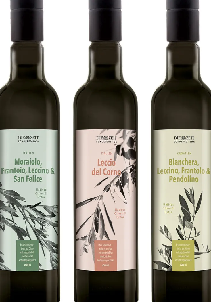 In Kooperation mit den Olivenölexperten von arteFakt wurde für diese ZEIT-Sonderedition eine exklusive Auswahl an hoch aromatischen Olivenölen getroffen. Die drei erlesenen Olivenöle (3 x 0,5 Liter) kommen aus traumhaften Regionen im Süden Europas. Jeweils aus Istrien (Kroatien), Abruzzen und Umbrien (Italien). Die jahrelange Erfahrung unserer Oliviers sowie das optimale Klima garantieren beste lagenreine Qualität und ein höchst aromatisches Geschmackserlebnis: echte »Native Olivenöle Extra«.