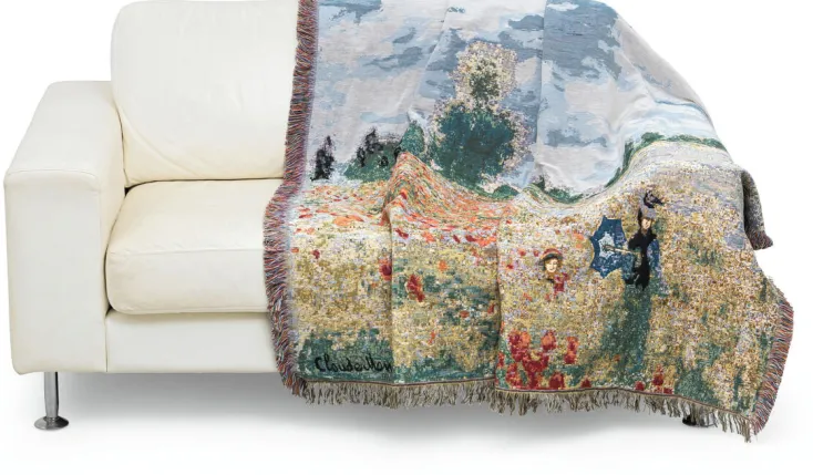 Gefertigt nach einem Motiv von Claude Monet. Die detaillierte Ausführung des dekorativen Motivs macht das Plaid zu einem exklusiven Wohnaccessoire.