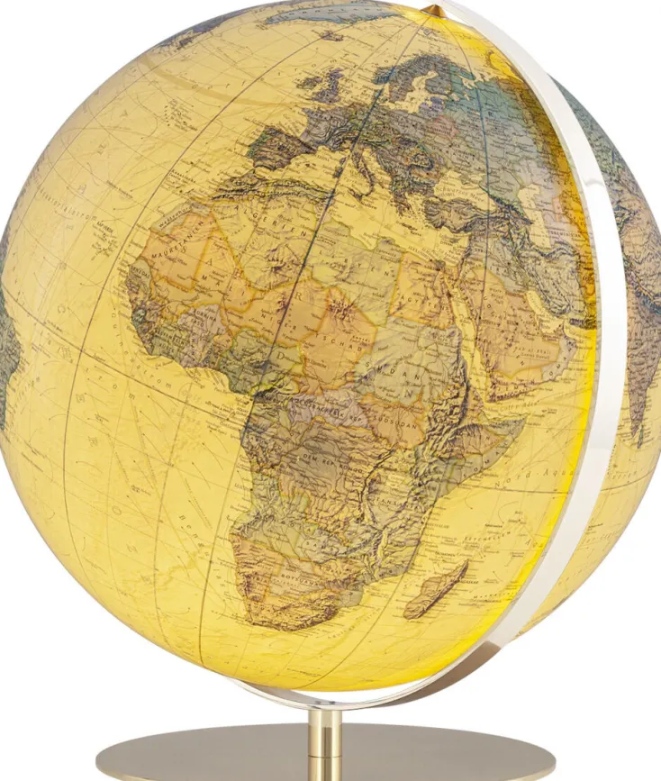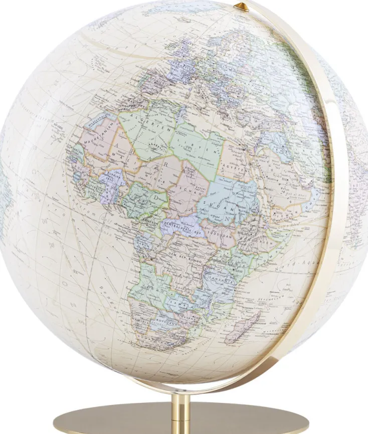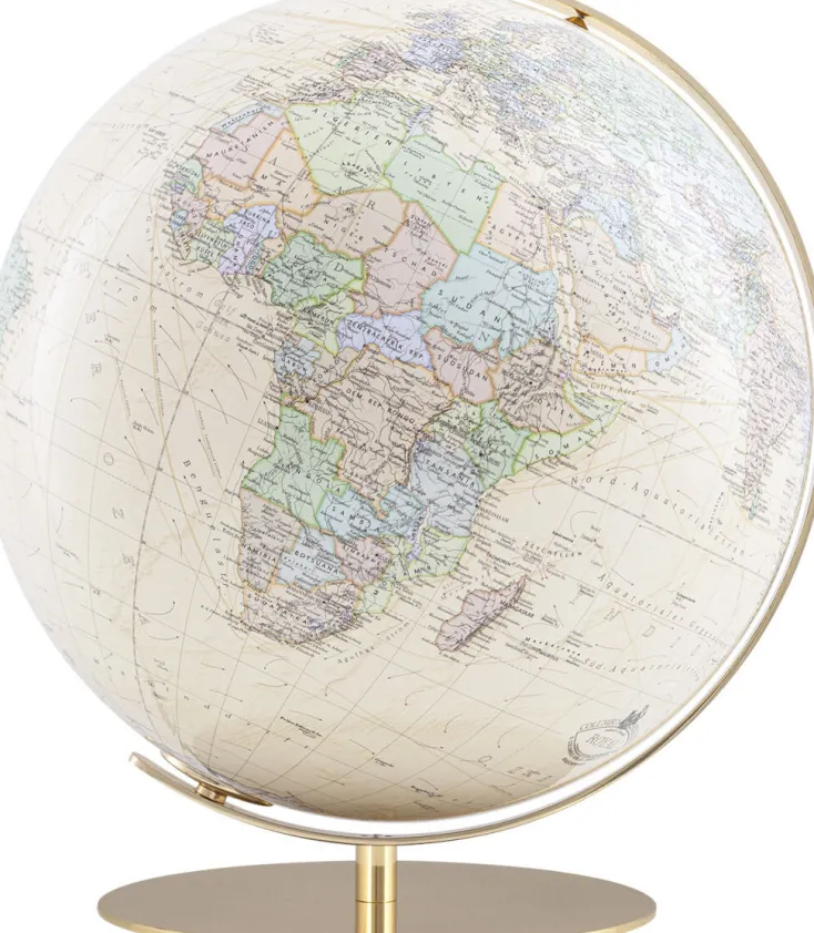 Die hochglanzpolierte Messingarmatur des Globus ist handwerklich meisterhaft gefertigt und macht ihn zu einem Ausdruck besonderer Lebensqualität, der Ihnen über Jahrzehnte Freude bereiten wird.
