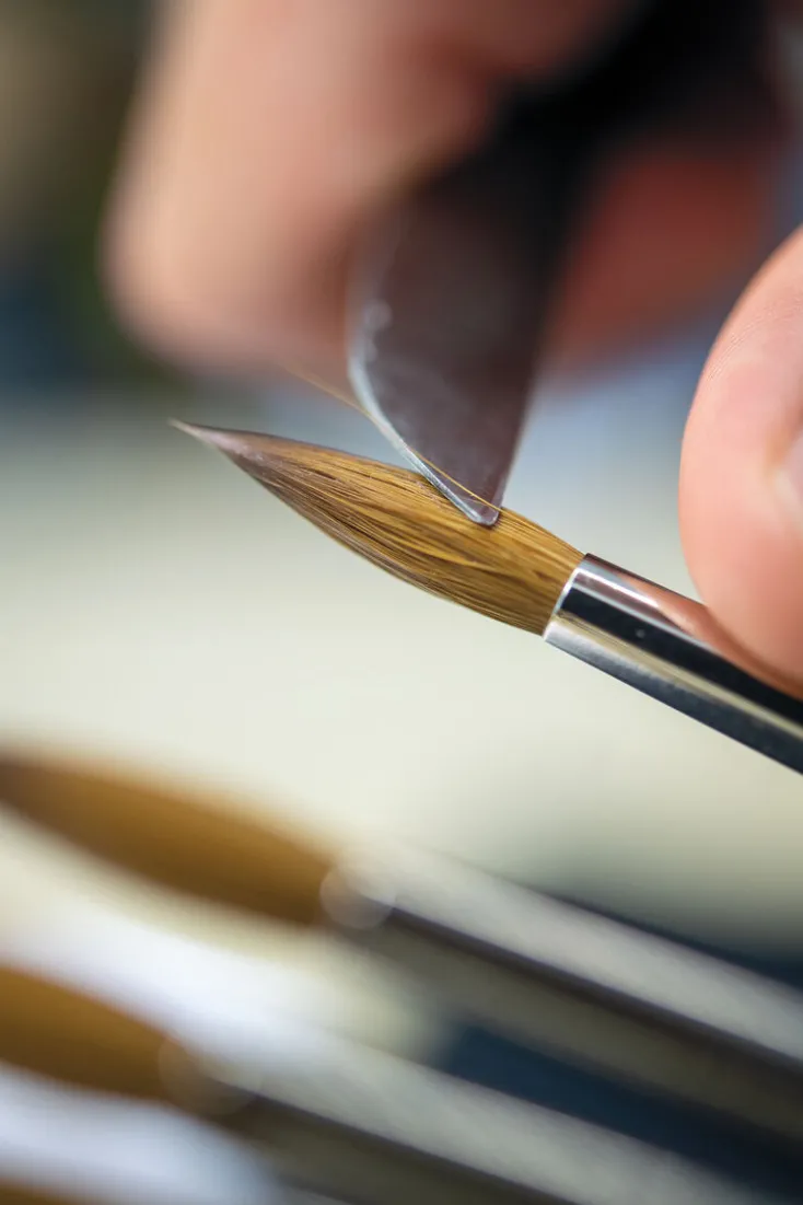 Mit der Pinsel-Serie »COLINEO« ist es da Vinci gelungen eine Kunstfaserkomposition zu erschaffen, die dem natürlichen Vorbild, der sibirischen Kolinsky-Rotmarderhaare mit ihren besonderen Eigenschaften, sehr nahe kommt. Eine sorgsam ausgewogene Mischung von unterschiedlichen Längen gerader und gewellter Kunstfasern mit extra feinen Spitzen, exakter Spitzbildung, hoher Elastizität und Farbaufnahme, die voll überzeugt und die Ihnen sicherlich viele Freunde bereiten wird.