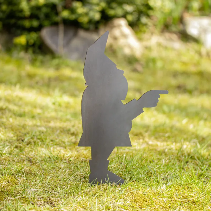 Mit »Fingus« dem Gartenzwerg können Sie in Ihrem eigenen Garten eine kleine Geschichte erzählen Schlicht gestaltet zeigt der Gartenzwerg was er kann. Sie haben keinen Garten? Kein Problem – Mit Hilfe des Keils, welcher sich unter den Füßen befinden, steht die Gartenfigur sicher in Ihren Blumentöpfen auf dem Balkon. Gefertigt ist die Figur aus Stahl, welcher anschließend mit Leinöl behandelt wir. So erhält »Fingus« seine dunkle und einzigartige Patina.