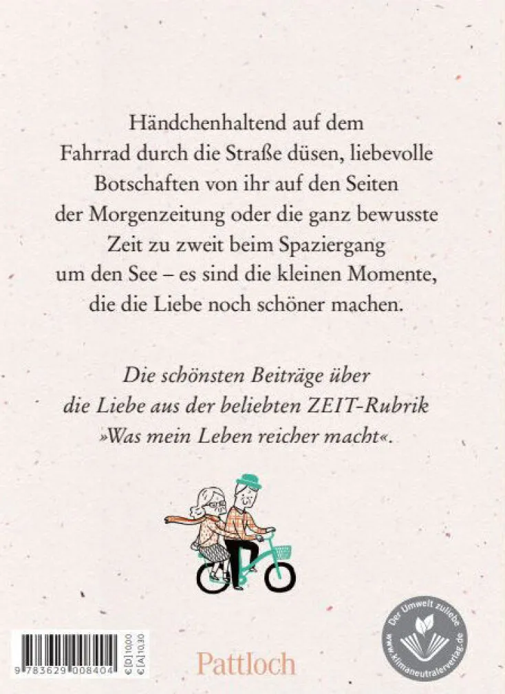Über die Liebe haben sich schon viele kluge Menschen den Kopf zerbrochen: Philosophen, Psychologen und vor allem Dichter. Aber nicht nur. Auch unter den Leserinnen und Lesern der ZEIT finden sich viele solcher klugen Köpfe. Dieses Geschenkbuch versammelt die schönsten Beiträge über die Liebe aus der beliebten ZEIT-Rubrik »Was mein Leben reicher macht«. Erzählungen von der flüchtig notierten Liebesbekundung, Heiratsanträgen und der blinden Verliebtheit: über 100 wahre Geschichten rund um das Thema Liebe, lassen uns an bewegenden, rührenden, heiteren und romantischen Momenten teilhaben.