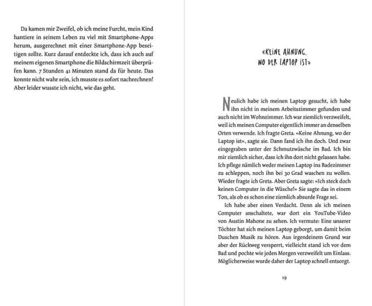 Wer heutzutage Kinder hat, holt sich gleichzeitig auch diverse mobile Endgeräte ins Haus. Ob Bluetoothboxen, Smartphones oder Social-Media-Kanäle: Überall bimmelt, piepst und quäkt es. Und wenn man zu Tisch bittet, ist immer auch die beste Freundin per WhatsApp-Chat dabei. Früher rang man über Ausgehzeiten, heute streitet man über die Bildschirmzeit.