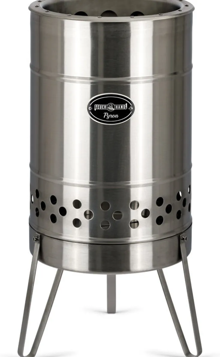 Mit dem Feuerhand »Pyron« bekommen gemütliche Abende am Feuer einen sicheren Rahmen und Sie können sich ganz dem entspannten Beisammensein mit Ihren Gästen widmen. Dabei wird die Feuertonne aus hochwertigem Edelstahl den modernen Ansprüchen gerecht und fügt sich harmonisch in Ihre Terrassengestaltung ein. Der doppelwandige Korpus ist mit speziell positionierten Belüftungsöffnungen ausgestattet, die den »Pyron« zu einer besonders rauch- und rußarmen Feuertonne für laue Sommerabende und kühle Herbsttage machen.