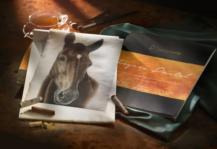 Abgestimmt auf die besondere Maltechnik hat das »Ingres Pastel« Papier eine feine Rippung mit einer leicht rauen Oberfläche. Sie lässt einen gleichmäßigen Farbabrieb ohne viel Druck zu, für klare und farbintensive Ergebnisse. Durch den ausschließlichen Einsatz von hochwertigen pigmentierten Farben bei der Produktion hat »Ingres Pastel« eine hervorragend hohe Lichtbeständigkeit.