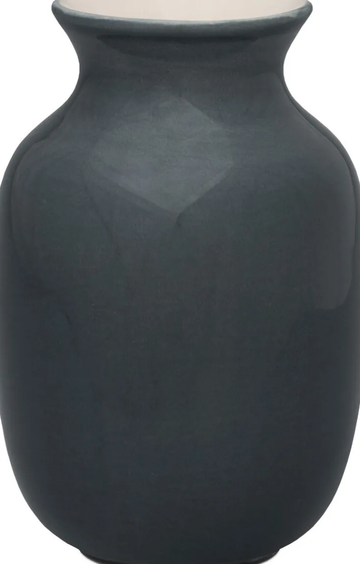 Gefertigt wird die Vase in den Hedwig Bollhagen Werkstätten. Aufgrund niedriger Brenntemperaturen bleibt die Haptik und Optik des Ausgangsmaterials Ton erhalten.