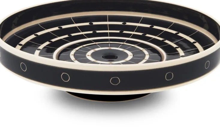 Gefertigt wird die Schale auch heute noch in Handarbeit in den Hedwig Bollhagen Werkstätten für Keramik. Mit schwarzer Engobe wird auf den reinen Tonscherben das von Hedwig Bollhagen entwickelte Originaldekor aufgetragen, durch Scraffitotechnik verfeinert und transparent glasiert. Die Hedwig Bollhagen Werkstätten für Keramik ist die einzige direkt aus dem Bauhaus hervorgegangene Manufaktur, die Design-Keramik mit Originalformen herstellt und neu interpretiert.