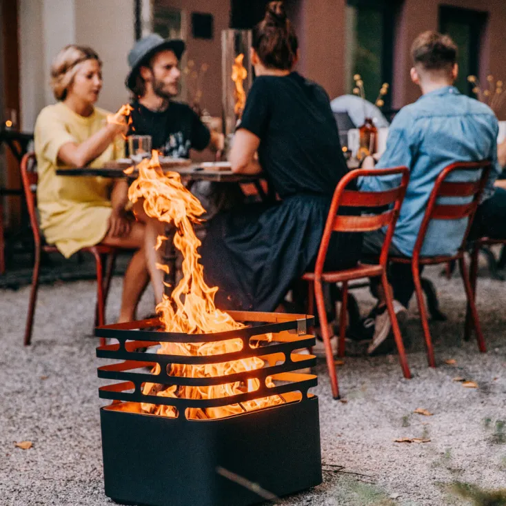 - Innerhalb der Ausbrüche vom FEuerkorb »CUBE« höhenverstellbar, hitzeregulierbar