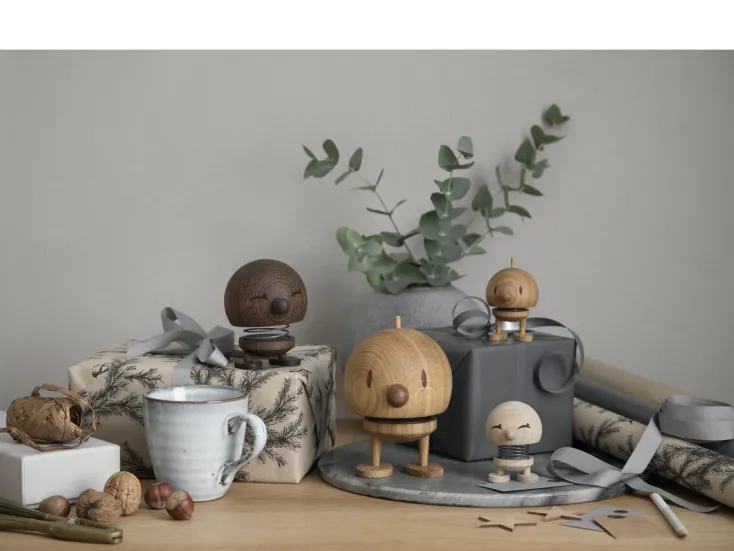 Mit einem starken Glauben an die Kraft des Lächelns schuf Gustav Ehrenreich Ende der 1960er Jahre seine fröhliche Hoptimisten-Bewegung. Das Ziel war es, eine Figur zu schaffen, die eine ewige Erinnerung daran bilden sollte, positiv und optimistisch zu bleiben. Denn obwohl die 60er Jahre oft als „The Happy 60ies“ bezeichnet werden, war das Jahrzehnt von Unruhen geprägt. Daher war Ehrenreichs Design ein gern gesehener Freudenspender in einer ansonsten eher turbulenten Zeit. Bimble und Bumble repräsentieren die allerersten Hoptimisten aus der Hand des Designers: Ein für die Schule gekleidetes Mädchen mit lächelnden Augen und ein aufmerksamer Junge mit einem Splint auf dem Kopf. Die fröhlichen Hoptimisten sind heute ein Teil der dänischen Designgeschichte und sorgen weltweit für Freude. Die Figuren sind in verschiedenen Größen und in einer breiten Farbpalette erhältlich, die jede Menge Energie, gute Laune und Freude verbreiten. Es gibt garantiert einen Hoptimisten für jeden Anlass und für jede Person.