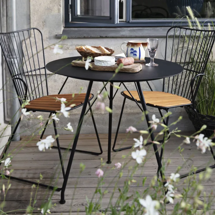 Leicht skandinavisch, aber mit einem Hauch französisch-viktorianischer Romantik kommt unser neue Dining-Chair »Paon« von HOUE daher. Der gemütliche Stuhl für Ihre Terasse oder Balkon wird aus pulverbeschichtetem Stahl und wetterfesten Bambuslamellen hergestellt. Der Sitzkomfort übertrifft alle Erwartungen an einen Metallstuhl und zudem sind sie wunderbar stapelbar uns somit leicht zu verstauen.