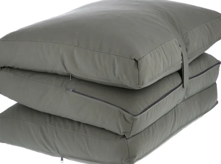 Die Sheffield Light Gästematratze von Jan Kurtz kommt luftig-leicht und locker daher. Sheffield Light ist dreiteilig und mit einem Handgriff zusammengefaltet – Liege oder Sitz. Ein durchaus vielseitiger Hybrid aus Matratze und Sitzsack: Jan Kurtz gestaltet in Eigenregie für seinen schwäbischen Möbel-Vertrieb eine überaus praktische Boden- bzw. Schlafmatte. Die drei Kissen sind mit weichen Polyetherflocken gefüllt und zusammengenäht, so wird ein Verrutschen verhindert. Die Füllung passt sich stets der Körperkontur an.Flach ausgelegt bilden die Kissen eine Sonnenliege für Strand und Stadtpark oder ein Gästebett für einen Übernachtungsbesuch.Klappt man jedoch lediglich zwei Kissen zusammen und lehnt das Dritte an die Wand, entsteht ein niedriger weicher Sessel.Durch die Ausstattung der Gästematratze mit strapazierfähigen, unifarbenen, abnehmbaren Bezügen, hat Jan Kurtz nicht nur eine waschbare Übernachtungsmöglichkeit erfunden, sondern auch ein Matratze die sowohl Drinnen als auch Draußen ein wahres Highlight ist.
