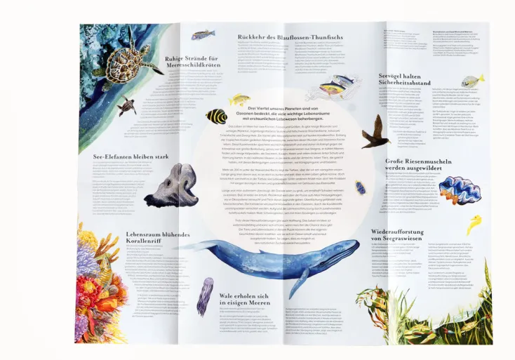 Dieses Puzzle zeigt die wundervolle, farbenfrohe Welt in unseren Ozeanen und berichtet davon, wie sich Arten und Lebensräume erholen können, wenn wir sie lassen. Perfekt zum gemeinsamen Puzzeln für Kinder und Erwachsene.