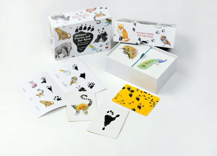 Ein tolles Spiel für alle Fährtenleser*innen: In diesem Memo-Spiel finden Sie Pfotenabdrücke von 25 wilden Tieren – wer kann sie richtig zuordnen? Hat gerade ein Elefant Ihren Weg gekreuzt, oder war es ein Ameisenigel? Können Sie einen Kojoten aufspüren, den Weg eines Pfaus verfolgen oder den Abdruck eines Pandabären erkennen? Es gewinnt, wer die meisten passenden Pärchen findet!