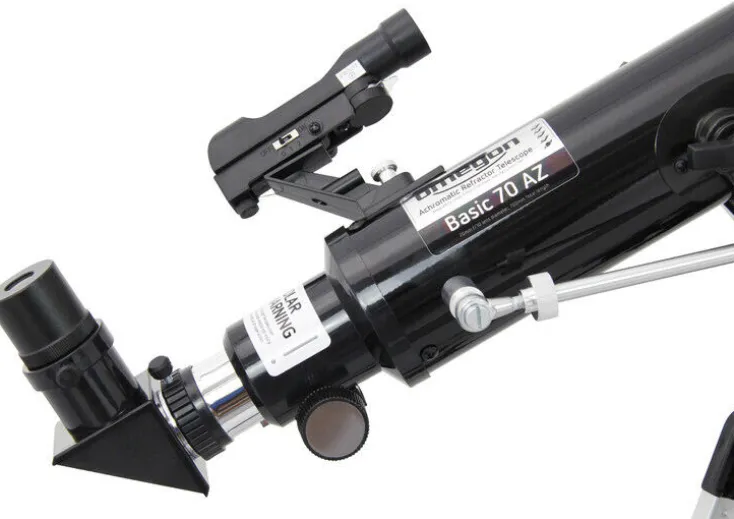 Dieser Refraktor sammelt mit einer Öffnung von 70mm bereits 100 mal so viel Licht wie das bloße Auge und damit auch wesentlich mehr Licht als klassische Einsteigerteleskope mit einer nur geringfügig kleineren Öffnung von 60mm. Somit besitzt es auch ein höheres Auflösungsvermögen und zeigt Ihnen mit einer maximalen Vergrößerung von 140x schon erste Details bei der Beobachtung der großen Planeten Saturn, Jupiter und Mars. Auch der Mond ist ein sehr lohnendes Objekt: Man kann wunderschön die Kraterlandschaft des Mondes beobachten, die je nach Phase immer in einem anderen Licht erscheint. Auch interessante Naturbeobachtungen bei Tageslicht sind mit einer Umkehrlinse oder mit einem Amici-Prisma möglich. Die Fokussierung erfolgt mittels eines Einstellrades am Okularauszug, das diesen über eine Zahnstange antreibt. So lässt sich die Schärfe immer genau einstellen und bleibt während der Beobachtung zuverlässig fixiert. Die Optik eignet sich auch bestens als Leitrohr, das man auf ein größeres Teleskop aufsetzen und zum Fotografieren oder zur Nachführkontrolle verwenden kann.