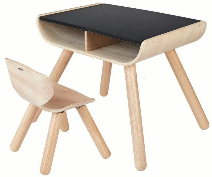Hergestellt sind die Möbelstücke aus FSC-zertifiziertem Holz von Kautschukbäumen, welche nach fünfundzwanzigjähriger Nutzung die Abgabe von Kautschuk eingestellt haben. Insgesamt kommt das Set ganz ohne Plastik und chemische Zusatzstoffe aus und ermöglicht damit ein sicheres und gesundes Mal- und Bastelvergnügen.