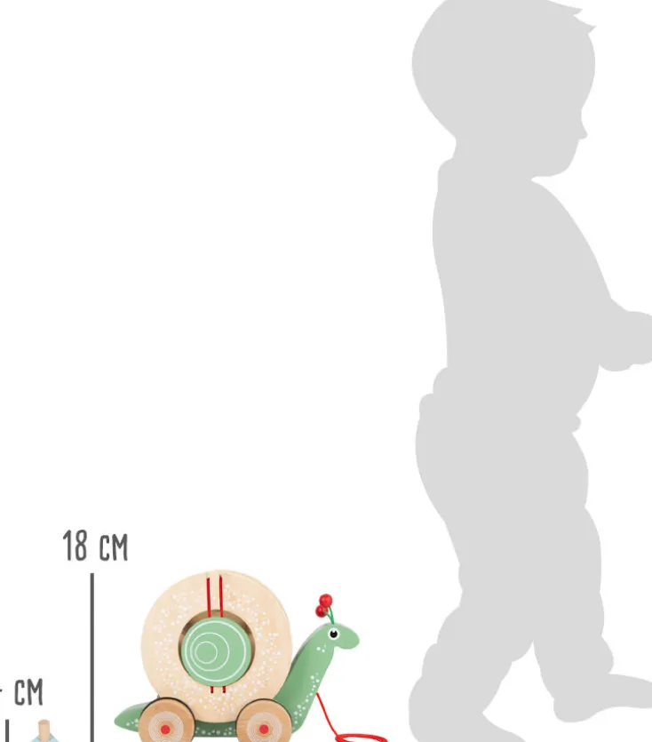 Diese »Nachzieh-Stecktier Schnecke« mit elastischen Fühlern und freundlichen Augen motiviert zum Laufen lernen. Während des Ziehens dreht sich das abnehmbare Schneckenhaus, erzeugt ein klackerndes Geräusch durch die darin befindlichen Stecksteine und fördert spielerisch die Farb- und Formerkennung durch das Anschrauben der Steine an der zweiten Seite des Schneckenhauses. Die Kombination von natürlichem Holz und modernen Farben macht dieses Ziehtier zu einem echten Blickfang! Das abnehmbare Schneckenhaus ist separat als Aufbewahrung für die bunten Steckelemente nutzbar. Dank einer seitlichen Tür mit Gummibandverschluss und einer Perle als Griff sind die Spielsteine leicht zugänglich. Aufgeschraubte Spielsteine sorgen zudem für eine geräuschärmere Aufbewahrung, da sie beim Ziehen nicht mehr im Haus klappern. Ein cleveres Motorik-Spielzeug für steck- und schraubbegeisterte Kinder.