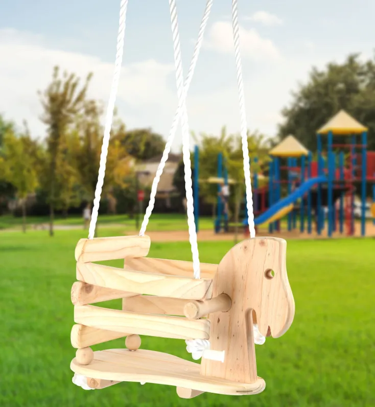 Mit der »Kleinkindschaukel Pony« können Ihre Kinder das Gefühl bekommen die Wolken zu erklimmen und zusätzlich viel Spaß beim Schaukel haben. Sie ist aus naturbelassenem Holz hergestellt und durch den Ponykopf haben Ihre Kinder einen sicheren Halt, um sich in die Lüfte schaukeln zu lassen. Die Schaukel ist in massiver und stabiler Ausführung mit einer erhöhten Umrandung. Sie können die »Kleinkindschaukel Pony« durch die Metallringe schnell im Innen- und Außenbereich auf- und abhängen.