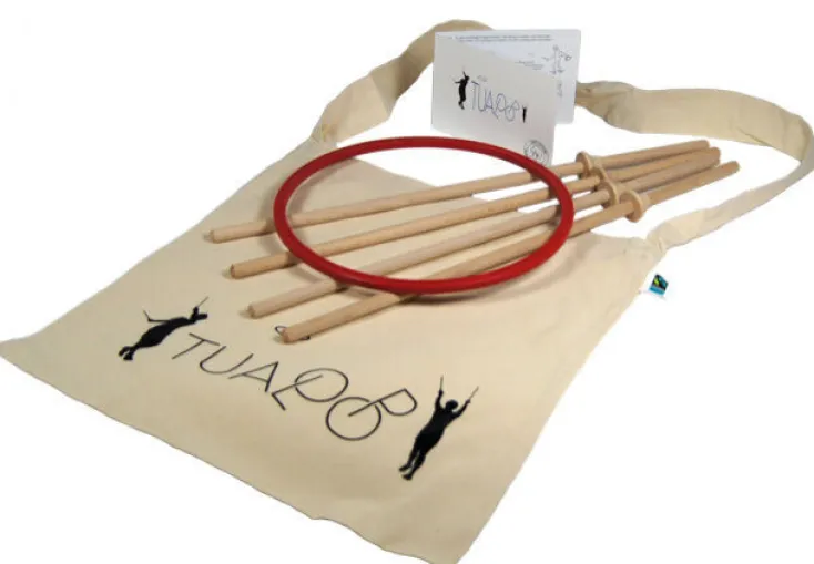 Beim Tualoop wirft man sich einen Ring aus Arboblend© (ein Biowerkstoff aus Harzen, Glukose und Holzfasern) mittels zweier Buchenholzstäbe zu, wobei jede Finesse von Spin und Turn genutzt werden kann. Dabei vereint Tualoop die Flugeigenschaften eines Frisbees mit den Sprungeigenschaften eines Balls.