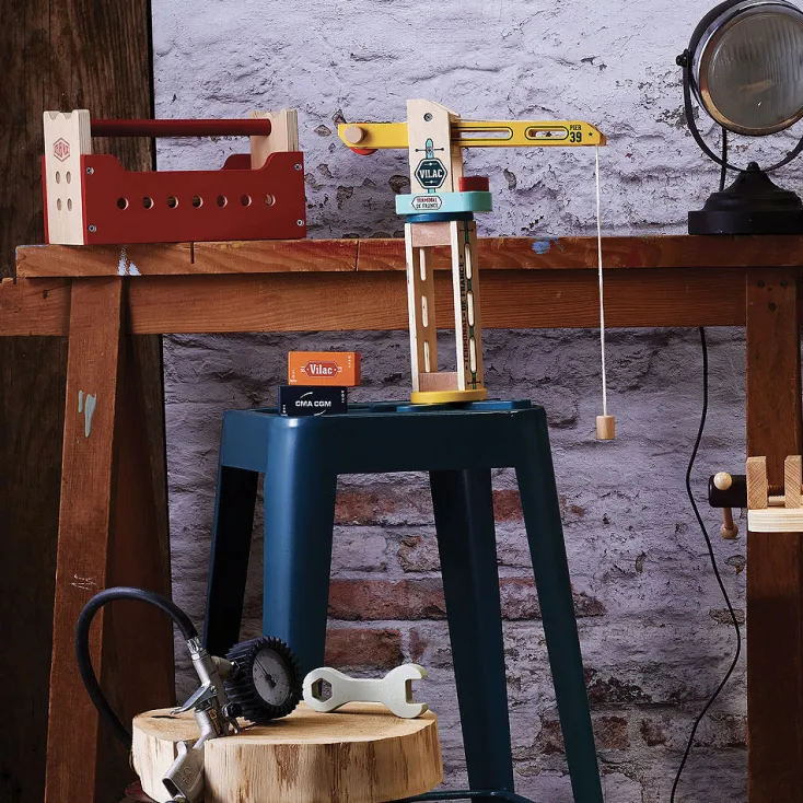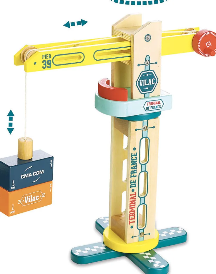 Der magnetische und drehbare Dockerkran aus Holz lässt nicht nur Kinderherzen schneller schlagen – so eignet sich der Kran als schöne Beschäftigung für gemeinsame Zeit. Die weiteren passende Spielzeuge von VILAC finden Sie »hier«.