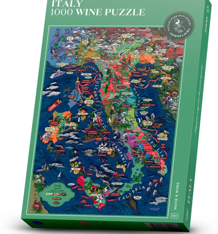 Unser Italien-Puzzle nimmt Sie mit auf eine Reise durch die außergewöhnlichen Weinregionen des Landes, ein Teil nach dem anderen. Dieses fachmännisch gefertigte und wunderschön illustrierte Puzzle fängt die Essenz der italienischen Weinherstellung ein, indem es die Rebsorten hervorhebt, die Italien zu einem der beliebtesten Weinziele der Welt gemacht haben. Von Sangiovese über Nebbiolo bis hin zu Glera – das Puzzle zeigt die charakteristischen Rebsorten auf der Karte und feiert ihre einzigartigen Aromen und Eigenschaften.