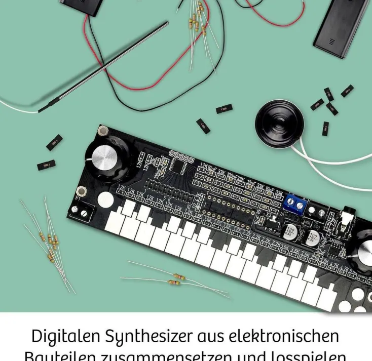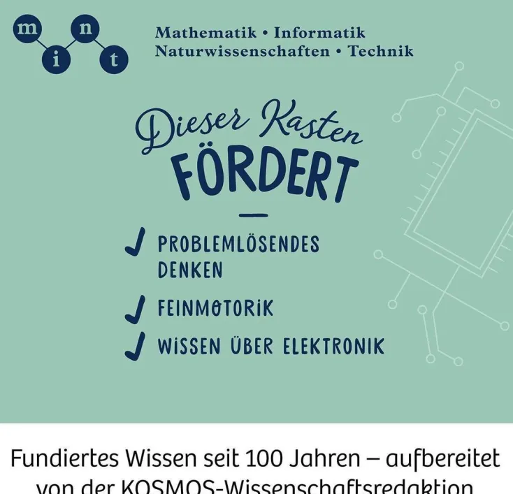 Eine elektronische Wundertüte für Musik- und Maker-Fans! Aus elektronischen Bauteilen wird die Sound Machine zusammengesetzt – und jetzt wird getüftelt! Welche abgefahrenen Sounds hat sie drauf?! Jedes Bauteil kann etwas Anderes, und sie können in unendlich vielen Kombinationen genutzt werden: Zwischen Klavier, Schlagzeug und Orgel gibt es auch noch unglaubliche Klangfarben und Effekte. Während Kinder zwischen 10 und 14 Jahren die Technik bis ins Kleinste durchschauen, hören sie sich über Lautsprecher oder Kopfhörer ihre selbst generierten Klänge an. Besonders cool, wenn sie alle drei Instrumente gleichzeitig spielen! Das Besondere: Mit der hybriden Bauweise werden bedrahtete elektronische Bauteile und bereits fertige Elemente auf einer Platine kombiniert – dadurch entstehen noch mehr Sound-Variationen. Ein KOSMOS Experimentierkasten für alle, die Elektronik bis ins kleinste Detail verstehen wollen und dabei Musik genießen – eine tolle Kombination für TüftlerInnen! Elektronik pur! Mit der Sound Machine von KOSMOS geht es in die Welt von genialen Tönen und elektronischen Bauteilen. Immer wieder neu kombinieren und schon wird aus den Klavier-Klängen ein Schlagzeug mit Loop-Funktion oder der Sound einer Orgel. Vom Spiel mit der Klangfarbe, mit den Oktaven bis hin zu Experimenten mit dem Potentiometer – die Sound Machine hat so viel drauf, es lassen sich sogar alle Instrumente gleichzeitig spielen! Mit Hilfe der Anleitung tüfteln die Kinder wie richtige Maker die Sound Machine zusammen und lernen dann in der Anwendung, welche klanglichen Auswirkungen die verschiedenen elektronischen Bauteile haben und warum. Die Belohnung: immer neue Klangkombinationen, die sie sich entweder über den Lautsprecher oder ihre Kopfhörer anhören können. Was für ein Sound-Erlebnis aus dieser elektronischen Wundertüte!