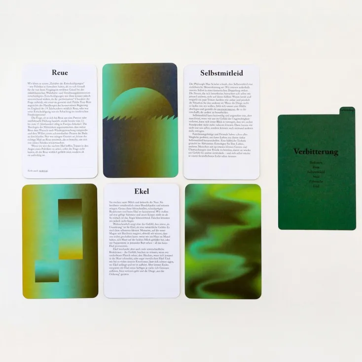 Eine Kulturgeschichte der Emotionen auf 80 KartenGefühle sind der Wegweiser durch Ihr LebenEntdecken Sie Emotionen, von denen Sie nicht einmalwussten, dass Sie sie haben!Tauchen Sie ein in Die Box der Emotionen und finden Sie denperfekten Ausdruck dafür, wie Sie sich fühlen. Jede der 80Karten enthält einen Text über eine Emotion auf der einenund ein faszinierendes Farbmuster, das die jeweilige Emotionvisuell darstellt, auf der anderen Seite. Erfahren Sie mehrüber sich selbst und darüber, wie Ihre Mitmenschen ticken!Die Bandbreite reicht von Wut und Sorge bis zu Empathie undMut. Hinzu kommt eine Vielzahl von Emotionen, die wir zwarals Gefühlszustand kennen, für die unsere Kultur jedoch keineneigenen Begriff entwickelt hat – wie Awumbuk, Fago oderLítost – die Ihnen möglicherweise eine ganz neue Seite IhresSeelenlebens eröffnen.