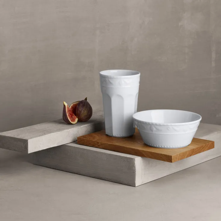 Das KURLAND Muesli-Gourmet Set steht für die harmonische Verbindung von Genuss, Gesundheit, Regionalität, Handwerkskunst und Design. Die konische Müslischale (0,45 Liter) nimmt die klassische KURLAND Form auf, die seit über 225 Jahren die Menschen begeistert. Der dazu passende, elegante KURLAND Latte Macchiato Becher (0,4 Liter) ist von der schlanken Form der facettierten Gläser inspiriert, wie sie traditionell für die Zubereitung von Latte Macchiato oder Cold Brew Coffee verwendet werden. Das formschöne Brett aus massivem Eichenholz bildet einen reizvollen Materialkontrast zu dem Weiß des sorgfältig von Hand gefertigten KPM Porzellans. Schale und Becher sind auf Wunsch personalisierbar.