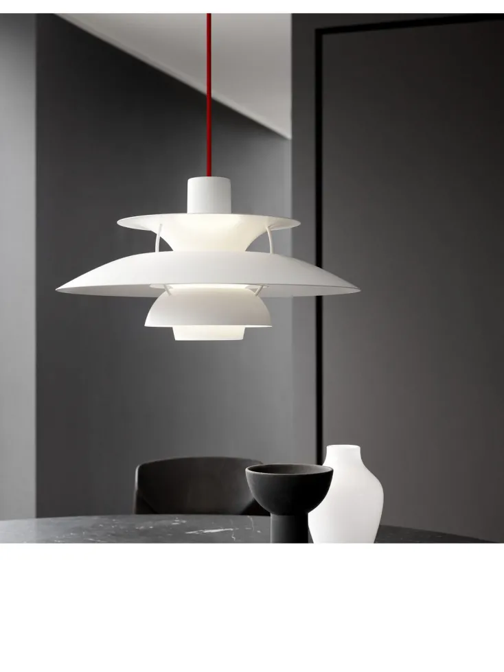 Doch die legendäre »PH5« war mehr als nur eine Leuchte. Sie war Henningsens leidenschaftlicher Versuch, die Farbwiedergabe des Leuchtmittels zu perfektionieren. Er fügte kleine rote und blaue Schirme hinzu, um die Farben in dem Bereich des Lichtspektrums zu verstärken, den das menschliche Auge am schlechtesten wahrnimmt – Rot und Blau. Gleichzeitig milderte sie das Licht im zarten gelb-grünen Bereich, wo unsere Augen ihre größte Empfindlichkeit zeigen. Niemand konnte damals ahnen, dass die »PH5« zum Symbol für absolut blendfreies Licht werden würde, unabhängig von der Installationsart oder der Art des verwendeten Leuchtmittels. Die »PH5« erfüllt auch heute noch die modernsten Innenräume in einer Vielzahl von Farben.