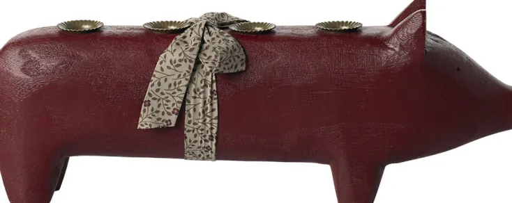 Der Kerzenhalter »Großes Schwein« von Maileg zaubert nostalgisches Flair in Ihr Zuhause. Hergestellt aus hochwertigem Holz und Metall, bietet er Platz für vier Kerzen und sorgt für eine einladende Weihnachtsstimmung.