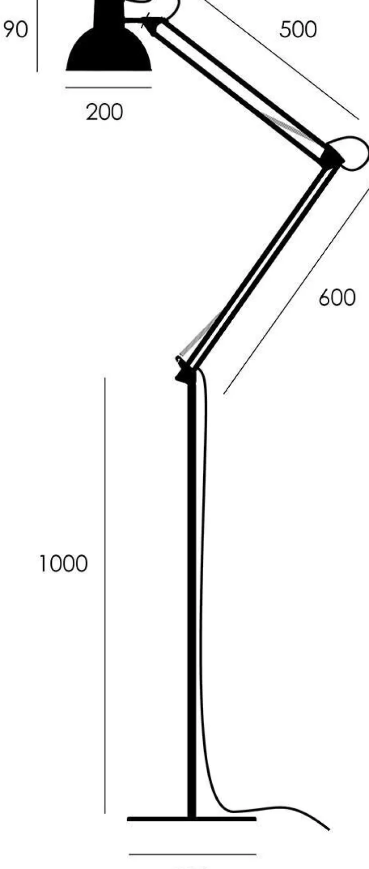 - Maße: Arme: 600 / 500 mm Basisarm: 1000 mm Schirm: Ø 200 mm Stehfuß: Ø 300 mm