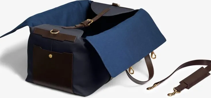 Ob auf Reisen, im Fitnessstudio oder beim Tennis – die Reisetasche »Supply« begleitet Sie überall hin. Durch die vollständige Öffnung gestaltet sich das Packen mühelos. Eine geräumige Innentasche mit Reißverschluss und vier kleinere Innentaschen bieten sinnvolle Organisation für all Ihre Notwendigkeiten und Besonderheiten. Die Tasche schließt sicher durch einen verstellbaren Lederriemen und eine Gürtelschnalle, die an der Stofflasche in jedem Zwickel befestigt sind. Die verlängerten Griffe ermöglichen ein leichtes Tragen, während der abnehmbare Lederschulterriemen mit Schulterpolsterung ein müheloses Tragen über der Schulter gewährleistet.
