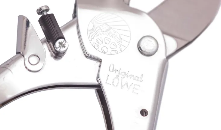 Die Jubiläumsedition »Classic Schere« von Original LÖWE ist eine Amboss-Schere mit gerader Klinge. Der verchromte Stahlkörper sowie die mittige Führung des Messerhebels machen diese Schneidwerkzeuge unvergleichlich robust und sind ein optisches Wiedererkennungsmerkmal.
