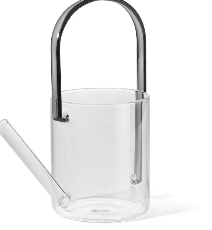 Die Gießkanne »Fresh« muss sich nicht verstecken. Dieser Archetyp einer Gießkanne glänzt durch vollkommene Abwesenheit von Schnörkeln und Gedöns. Mehr als das (nahezu unzerbrechliche ) Borosilikatglas mit O,8l Fassungsvermögen, der übergroßen Einfüllöffnung und dem atemberaubend schlicht geformten Tragegriff braucht es nicht.