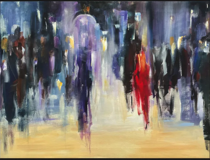 Die Werke des 1964 geborenen Robert Hettich oszillieren gekonnt zwischen Abstraktion und Konkretisation, zwischen Farbimpression und figürlicher Darstellung. Die Motive bleiben erkennbar, doch ist die Hauptwirkung eine Stimmung, eine Emotion, die sich dem Betrachter gerade durch die in Farbfläche und Komposition aufgelösten Menschengruppen mitteilt.