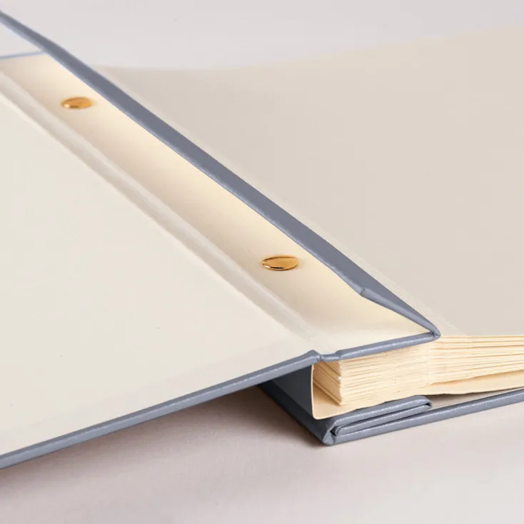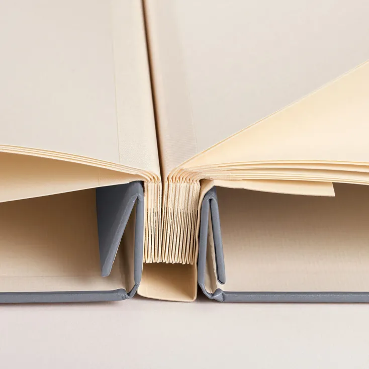 Die Gelenkseiten dieses besonderen Albums bleiben beim Blättern offen liegen und klappen nicht zurück. Das erleichtert nicht nur das Einkleben von neuen Bildern sondern auch das anschließende Stöbern. Eine echte Bereicherung beim Gestalten und Anschauen des Fotoalbums. Durch die Buchschrauben-Technik können Seiten mühelos ergänzt oder ausgetauscht werden. So kann das in liebevoller Handarbeit gefertigte Album stetig mitwachsen. Ein besonderes Album für besondere Erinnerungen aus dem Hause Rössler.