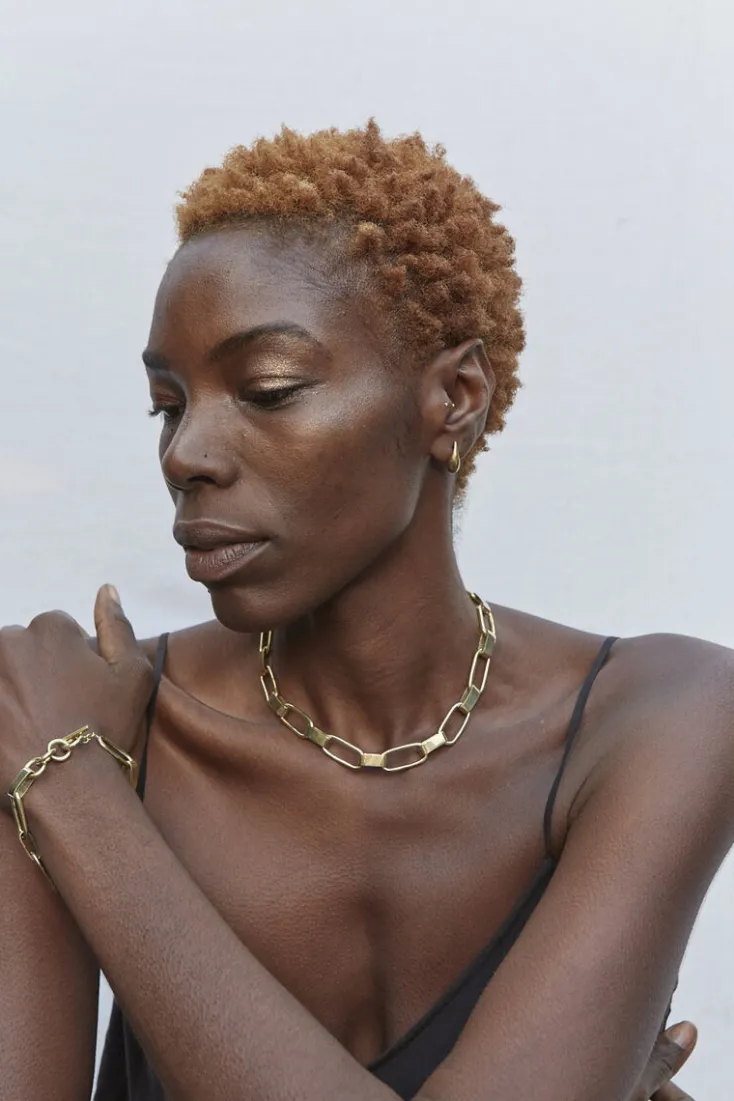 Die besonderen Schmuckstücke von Soko strahlen nicht nur selbst – sie lassen auch ihren Träger erstrahlen. Das 24 Karat vergoldete Messing liegt kühl und edel auf der Haut und schmiegt sich dabei schmeichelnd an jeden Hals und jedes Handgelenk an. Das moderne Design verstrahlt zeitgleich Jugend als auch Gravität.