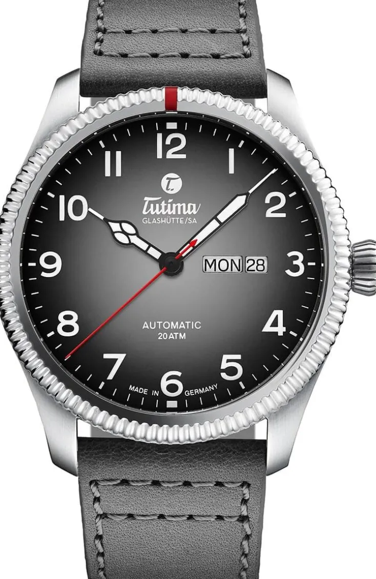 Sichern Sie sich Ihr persönliches Exemplar der auf 100 Stück limitierten »Grand Flieger Classic Automatic Schiefergrau« aus der Manufaktur Tutima Glashütte in exklusiver Farbgebung mit Rindslederarmband.