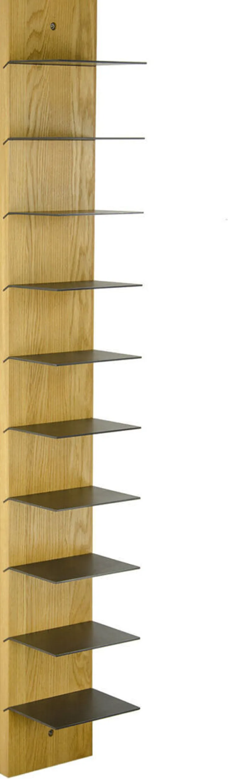 Das in Deutschland handgefertigte Wandregal »Scala« besticht durch seine Schlichtheit und Funktionalität. Die Einlegeböden sind aus geöltem Stahl und variabel einsetzbar: Sie können horizontal angebracht werden, dass Bücher und andere Accessoires optimal platziert werden, oder ebenfalls leicht schräg, sodass die Einlegeböden den optimalen Halt für Ihre Magazine oder Zeitschriften bieten.