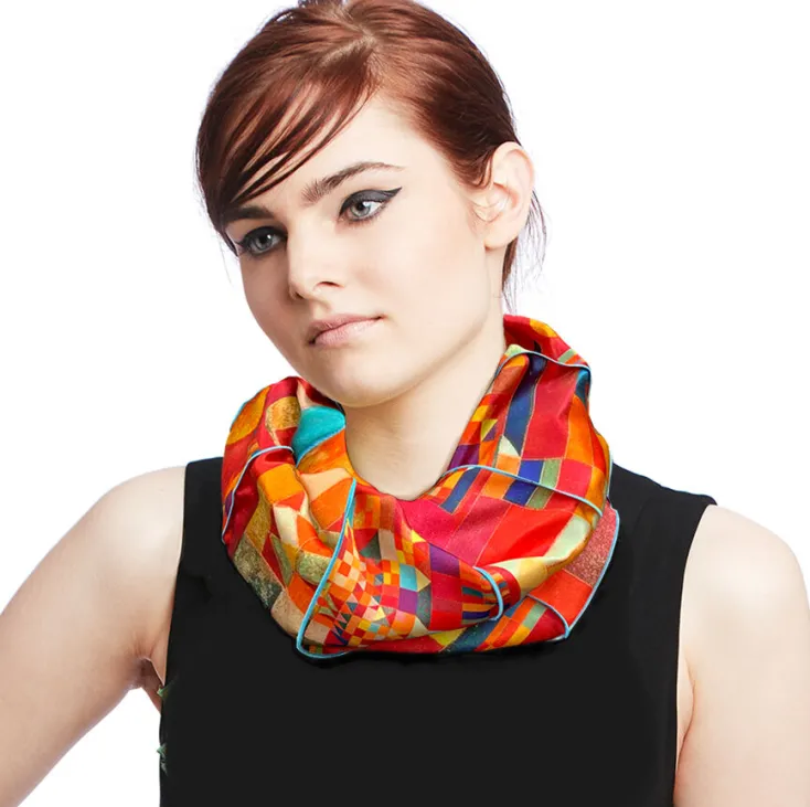 Dieser künstlerische Schal ist in seinem Design dem abstrakten Gemälde »Burg und Sonne« des Künstlers Paul Klee nachempfunden. Das charakteristische Design verleiht dem Schal seinen einzigartigen Charakter und macht ihn zum dekorativen Statement. Ein Schal, der mit seinem besonderen Print auf weichem Seidensatin in satten und warmen Farben schimmert. Er ist das perfekte Accessoire für Kunstliebhaber, die ihre Begeisterung für die Kunst auf stilvolle Weise zum Ausdruck bringen möchten und eignet sich außerdem als Geschenk für besondere Anlässe.